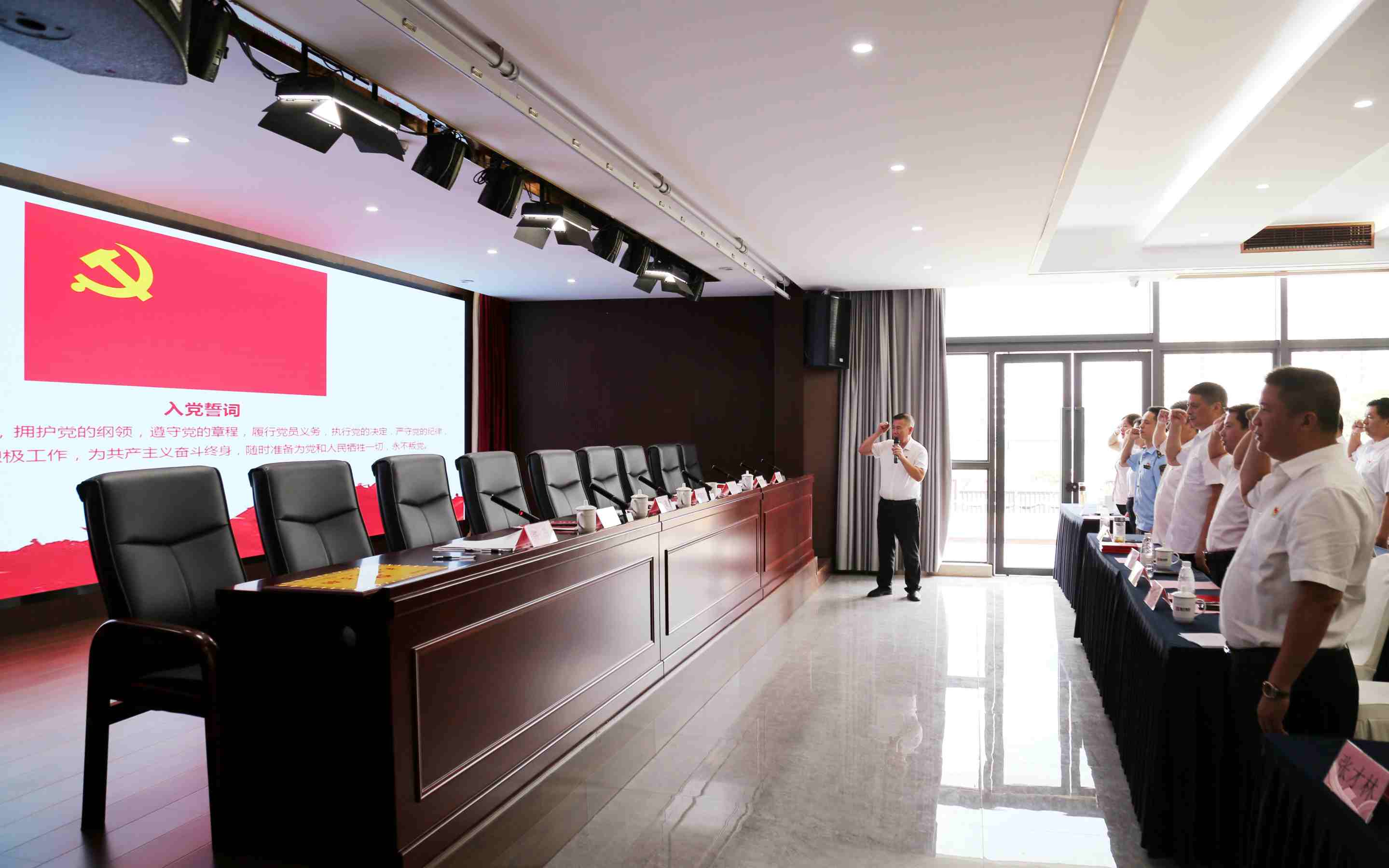 大會上,黨委副書記劉南斗同志為2025年入黨積極分子頒發紅色書包,帶領全體黨員和預備黨員在鮮紅的黨旗下重溫入黨誓詞,莊嚴宣誓,字字鏗鏘,句句堅定,表達了對黨的忠誠和為共產主義事業奮斗終身的決心。