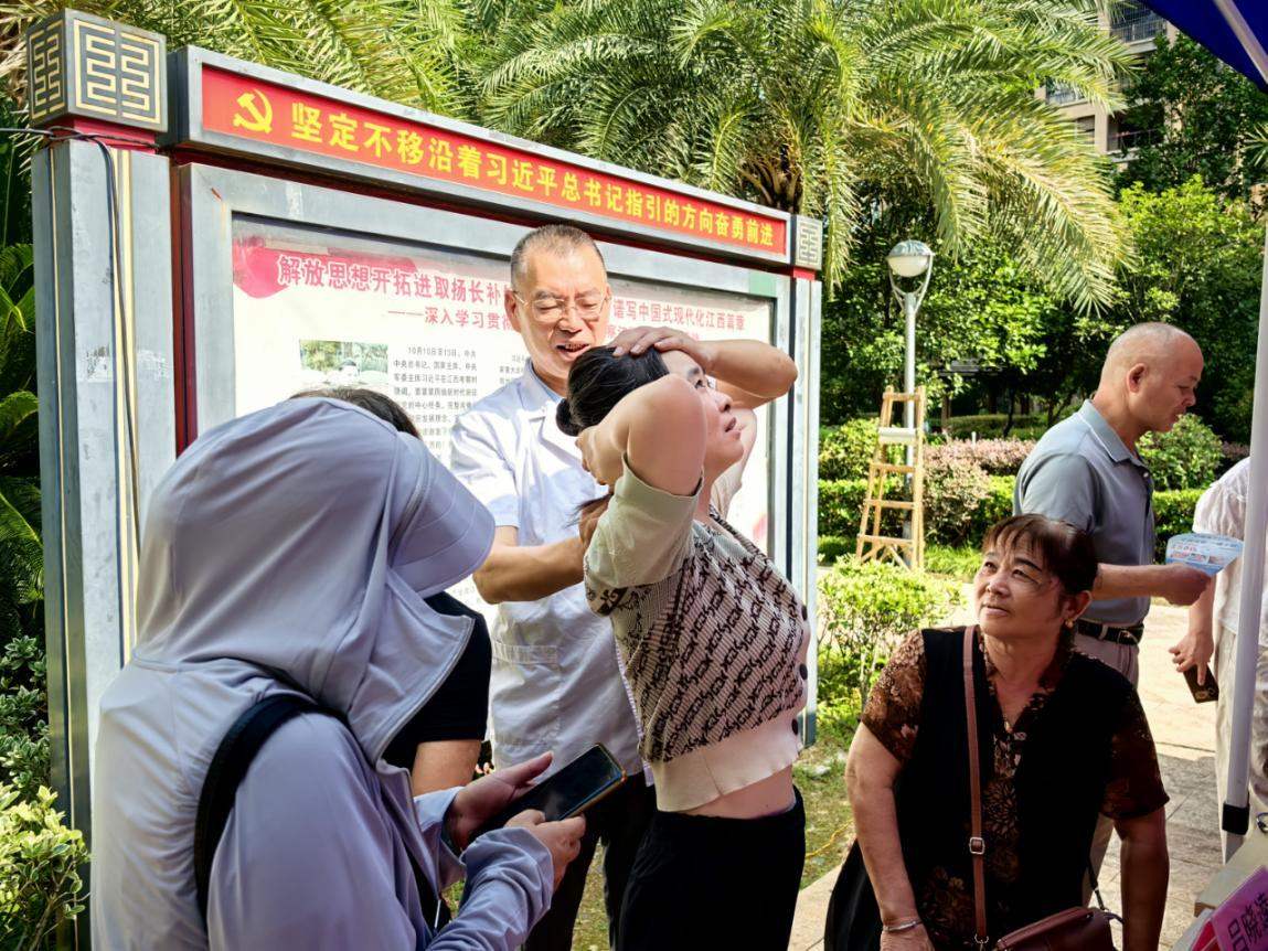 在中醫(yī)技術(shù)體驗(yàn)區(qū),醫(yī)護(hù)人員都展現(xiàn)出高度的專業(yè)素養(yǎng)與耐心,通過望、聞、問、切,對居民的面色、舌象、脈象及癥狀等進(jìn)行綜合判斷,辨識(shí)其體質(zhì)類型,免費(fèi)開展的針灸、艾灸和耳穴等項(xiàng)目吸引了眾多居民駐足體驗(yàn),為居民提供針灸治療,調(diào)節(jié)經(jīng)絡(luò)氣血運(yùn)行,緩解疼痛、改善癥狀。不少體驗(yàn)后的居民紛紛表示,身體的一些不適得到了明顯緩解,對中醫(yī)的神奇療效贊不絕口。