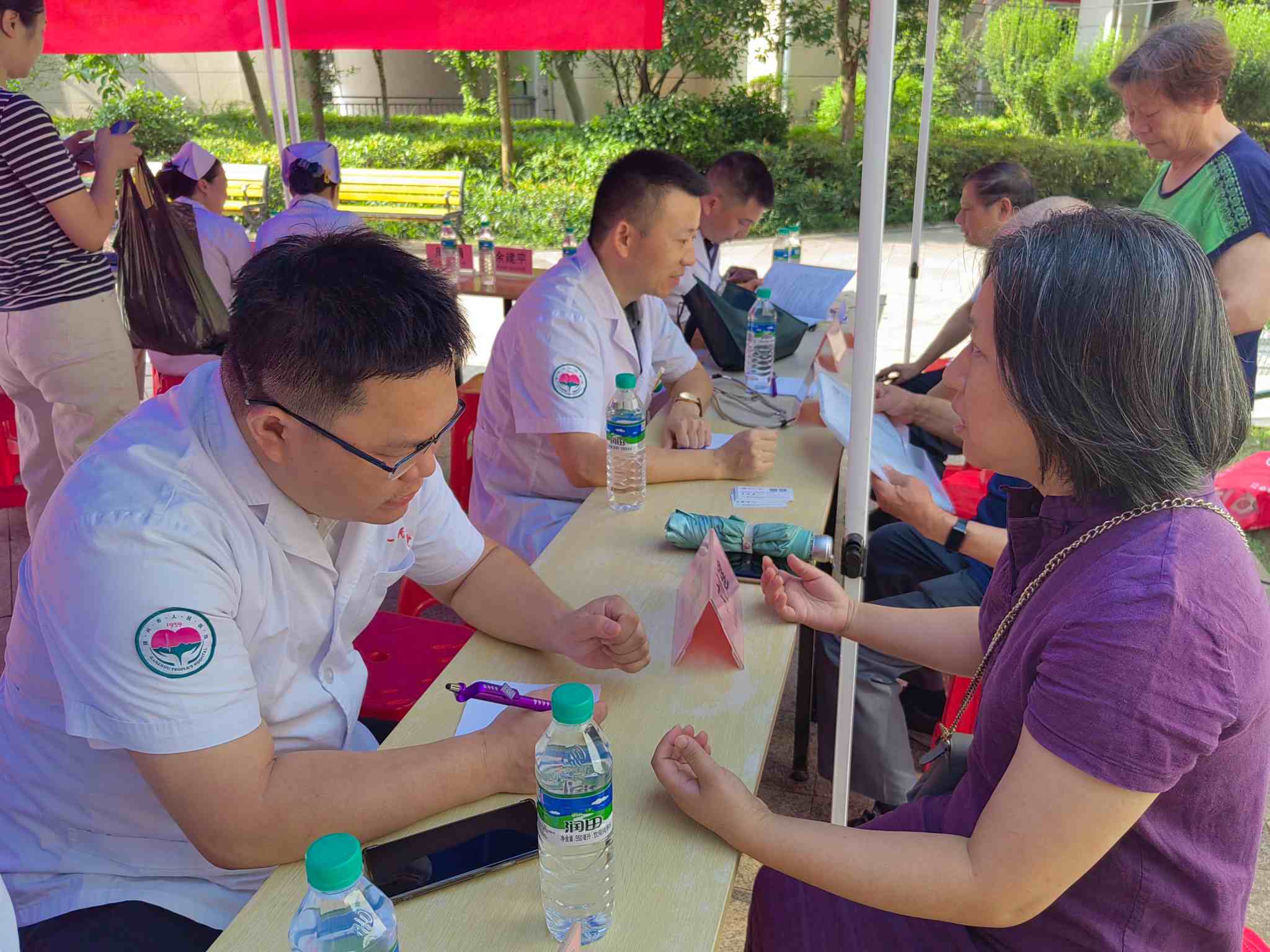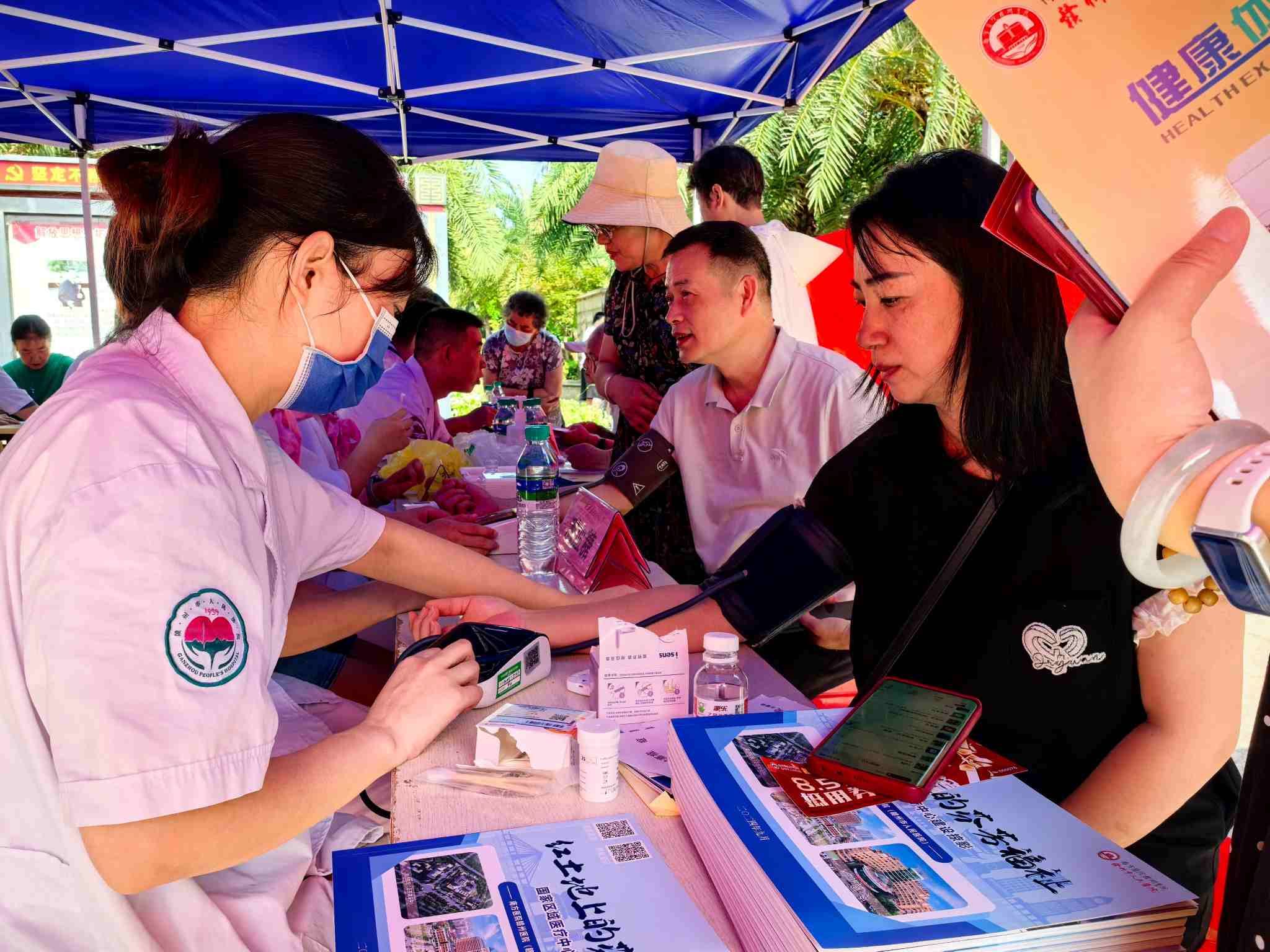 芳菲歇去何須恨,夏木陰陰正可人。為踐行“我為群眾辦實(shí)事”的服務(wù)理念,積極響應(yīng)國家關(guān)于提升基層醫(yī)療服務(wù)水平、關(guān)愛居民健康的號(hào)召,切實(shí)解決群眾看病就醫(yī)的實(shí)際問題。在小區(qū)迎來業(yè)主入駐十周年慶典之際,7月5日上午燕興集團(tuán)聯(lián)合南方醫(yī)院贛州醫(yī)院(贛州市人民醫(yī)院)博士團(tuán)隊(duì)走進(jìn)水南街道登峰社區(qū)公園壹號(hào)義診服務(wù)點(diǎn),開展了“博士站一周年,院社合作啟新篇”為主題的大型義診活動(dòng)。此次活動(dòng)旨在為居民提供便捷、實(shí)用的服務(wù),用愛意傳遞服務(wù),用實(shí)際行動(dòng)傳遞關(guān)懷,促進(jìn)鄰里和諧,增強(qiáng)社區(qū)凝聚力,為社區(qū)居民提供免費(fèi)健康檢查與咨詢服務(wù),切實(shí)將優(yōu)質(zhì)醫(yī)療資源送到居民家門口,受到了廣大居民的熱烈歡迎和積極參與,為社區(qū)居民帶來了一場全方位、高質(zhì)量的健康關(guān)懷盛宴。