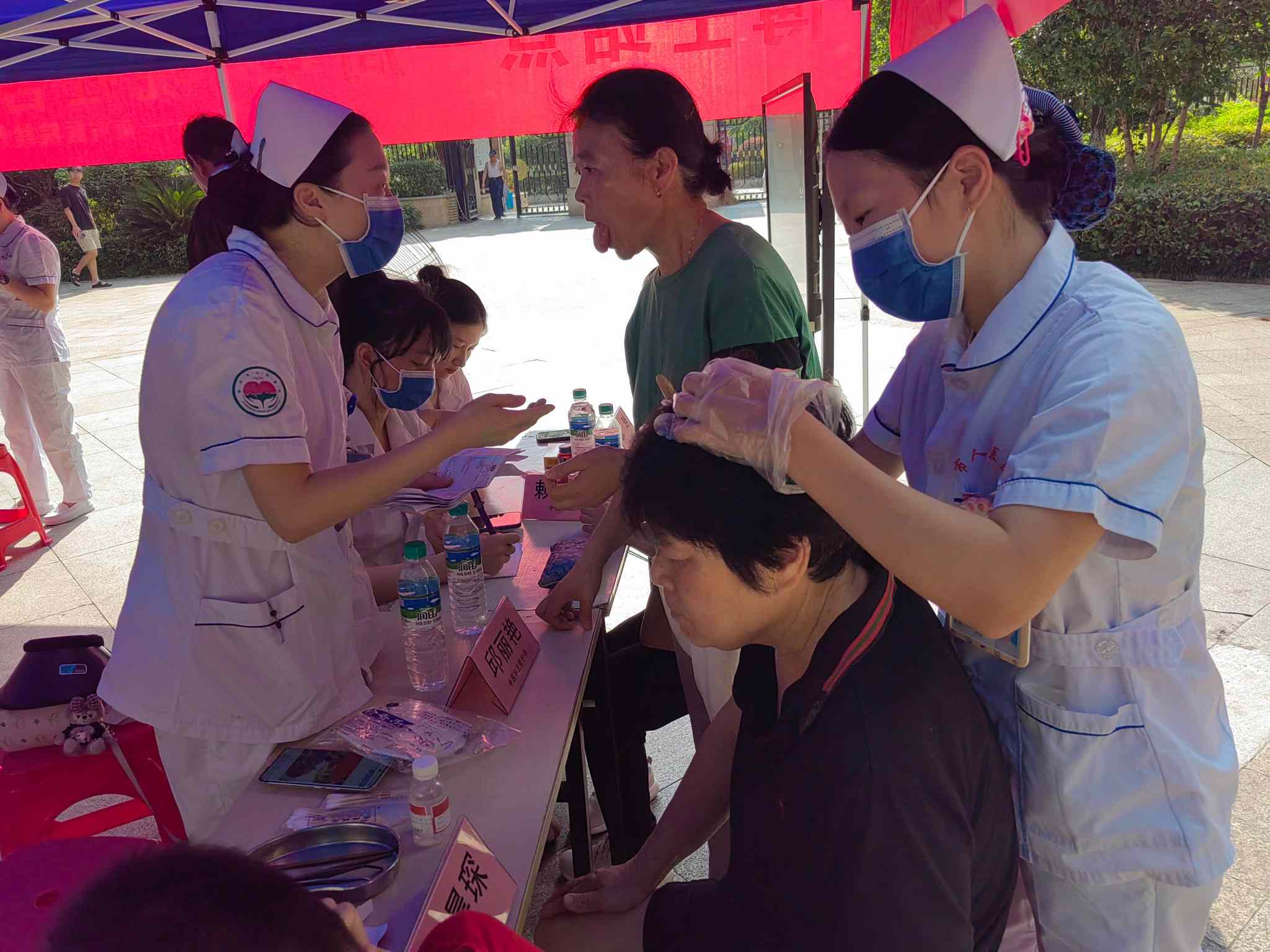 血壓、血糖測量處同樣排起了長隊(duì),醫(yī)護(hù)人員熟練地為居民測量,并將測量結(jié)果詳細(xì)記錄,為居民建立健康檔案。