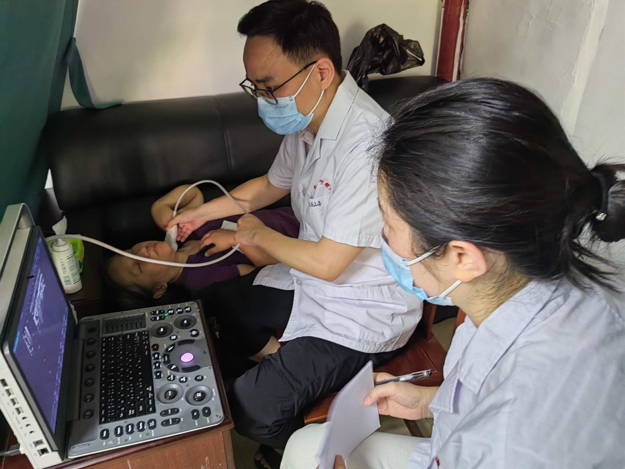 在甲狀腺彩超檢查區(qū)域,專業(yè)的超聲醫(yī)生全神貫注地操作著儀器,為居民進(jìn)行細(xì)致的檢查,并結(jié)合檢查結(jié)果給予專業(yè)的建議和指導(dǎo)。