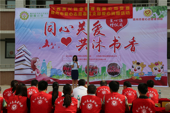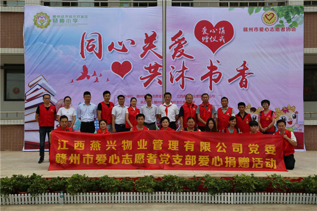 2018年6月11日上午,在贛州經濟技術開發區楊梅小學校園內,由江西燕興物業管理有限公司黨委和贛州市愛心志愿者黨支部共同主辦的“同心關愛·共沐書香”愛心捐書儀式在這里舉行。